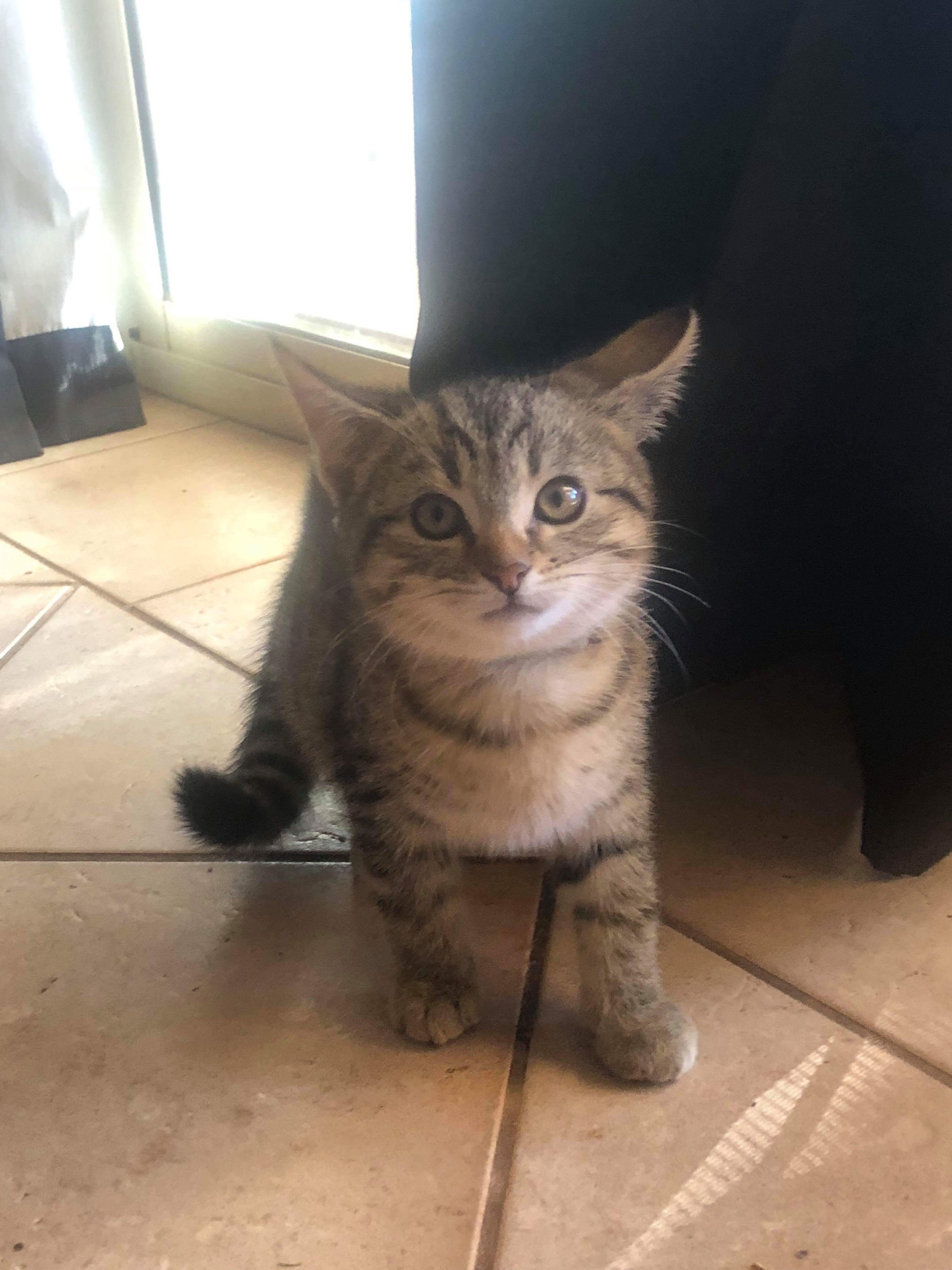 Rexy is an adorable sniffly kitten he's quieter than his siblings and much more gentle in his play.