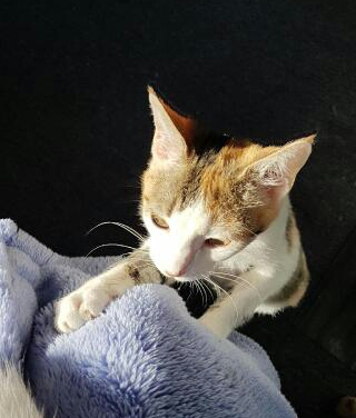Meira is a sweet smoochy little lady. She is a bit timid at first and usually prefers women to men. She's a mumma.s girl and she would love a quiet home where she can cuddle and play and truly shine. She loves to follow her foster mum everywhere and be a part of our daily routine. She has the sweetest purr and loves to hold hands.