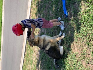 Zuba is currently living with a young child, and would be suitable to go to a home with dog savy children who are comfortable around large breed dogs.