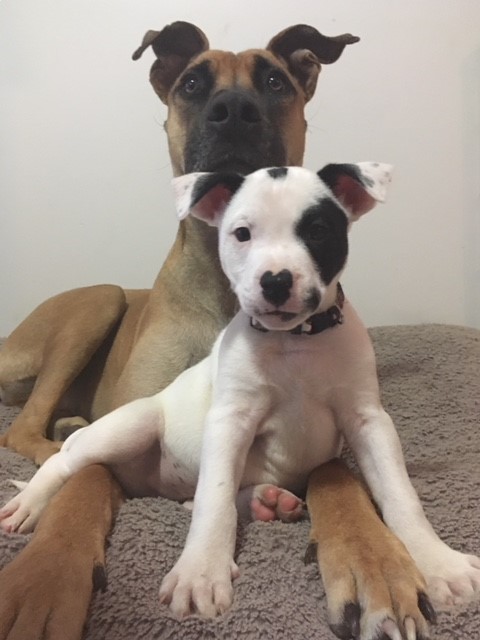 I love to explore every nook and cranny, play with my toys and rough house with my sister. I live with other bigger doggy friends and enjoy pushing the boundaries with them but at the same time learning to listen and respect both them and the two legged variety whom I share a home with. I have been provided with rules around normal puppy behaviour like biting, chewing, barking and jumping and respond well to a kind but firm and consistent approach. I am looking for a home where I am welcome to spend time inside with my family and where my bed is also indoors. I would love a home with another dog to play with and ideally you would be home a fair bit too.