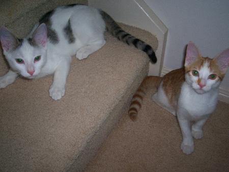 Brutis is a white and ginger 'mr adventure' with a playful nature but very friendly too! he loves running up and down stairs and playing hide and seek with his brother thunderbolt! he is housetrained, very lovable and ready now to come home with you!