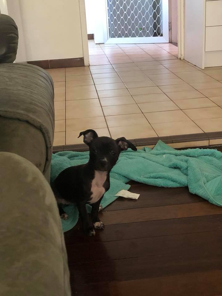 We have been told that mum is an American staffy but the dad is unknown.... They are said to be nine weeks old so since they are quite small, they are unlikely to be any bigger than a small medium in size. They all have a short wheelbase so I can't help wondering if we have six little "Bombers" on the scene.