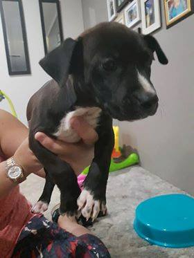 We have been told that mum is an American staffy but the dad is unknown.... They are said to be nine weeks old so since they are quite small, they are unlikely to be any bigger than a small medium in size. They all have a short wheelbase so I can't help wondering if we have six little "Bombers" on the scene.