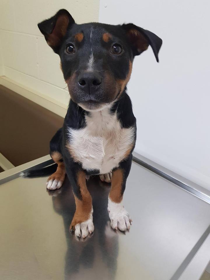 He is a pretty feisty pup who is possibly a Staffy X Rotty... He certainly has the build of those 2 breeds and he is very chatty like most Staffies... For a little fellow he displays plenty of bravado and won't back down from anything without a show of strength. However, offer him cuddles and pats and he'll accept those very happily.