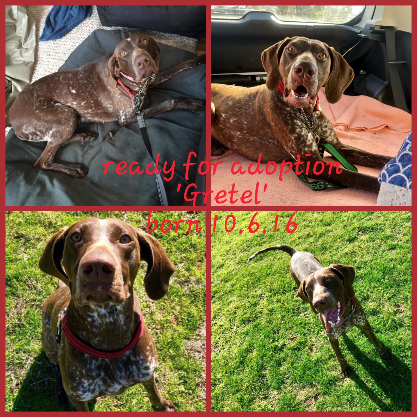 If you are after a true companion then Gretel would suit a young energetic family or a person who enjoys the great outdoors as much as she does!