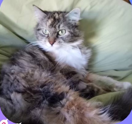 Hello. My name is Delilah. I am a beautiful Persian X, my long soft coat is a stunning mix of gray and ginger, I have a lovely vivid white chest. I’m a lovely girl, I used to have kittens, but they are all gone now, so time for me to find my own forever home. I would love a peaceful home where we could become great friends, where I could snuggle on your lap, sit on the couch with you, and recline across a corner of your bed. Do you think you could love a pretty girl like me.