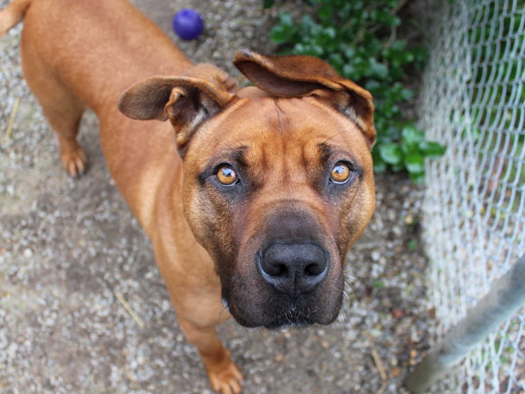 I am a big, affectionate boy who would thrive in a home where I am the only animal to receive your love and attention. I love to chase a ball and will happily play fetch until your arm grows tired. I have been working hard to learn basic doggie manners through positive reinforcement training and would love to be adopted by an experienced dog owner who will continue with my training and help me with my social skills.