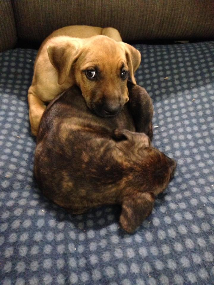 I spend my days playing with my big foster sister - she is the best. I love playing with her. My favourite game is playing tug-o-war! I know how to sit and I am learning to wait for my food.