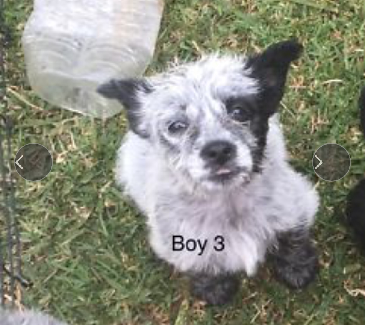 Sweet healthy playful puppy. Robbi has no tail which is super cute. He is a little shy but we think that is due to him having been kept in a cage with no new experiences. But he is coming out of his shell.