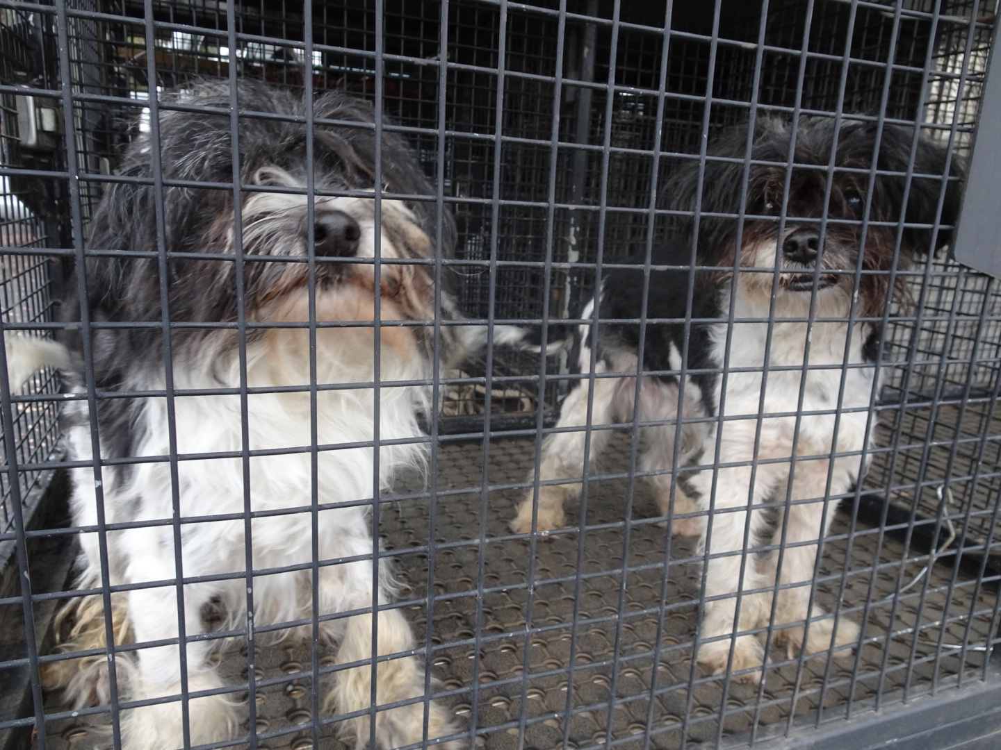 Comet & Sarg are special needs dogs that have arrived in our care through no fault of their own. They have been surrendered and are looking for an extra special family to live out the rest of their days. Comet is 12 years old and Sarg is only 5 years old but they are inseparable and would have to go to a home together. They were in less than average condition when they arrived and we have been bringing them back to their former glory. While they were being groomed, they had to be together or they fretted and cried.