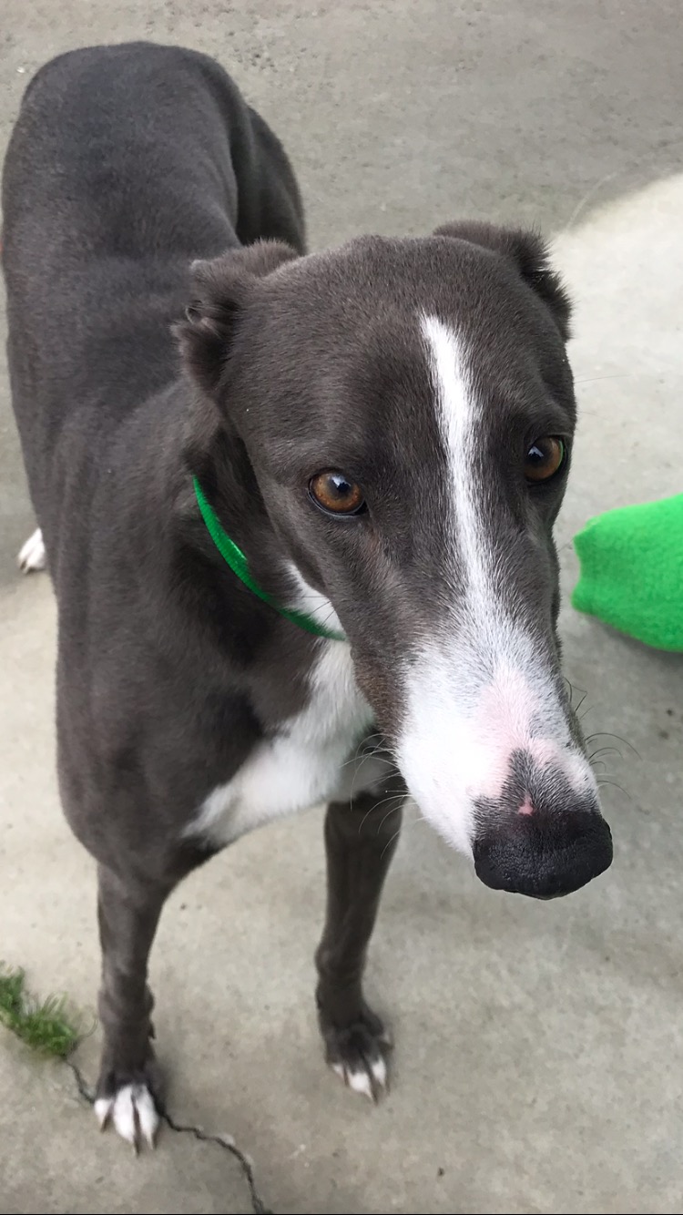 Stewart is a loveable 2 year old gorgeous, sweet and gentle boy! He is one of the most happy and playful greyhounds we have seen. His playfulness is only matched by his foster brother, Dean. They play so gently with each other. Stewart has such a fantastic temperament, that, no matter what challenges are thrown at him, he takes it all in his stride and just stays happy and wags his tail. He makes everyone who meets him smile!