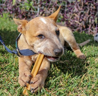 Snorkle is another one of Hannie’s puppies. He is a super happy, playful boy who is loving his new life now he’s in foster care! He is a typical puppy, loves his food and his bed, and then likes attention from his foster carer for cuddles, and playtime with his siblings and their toys.