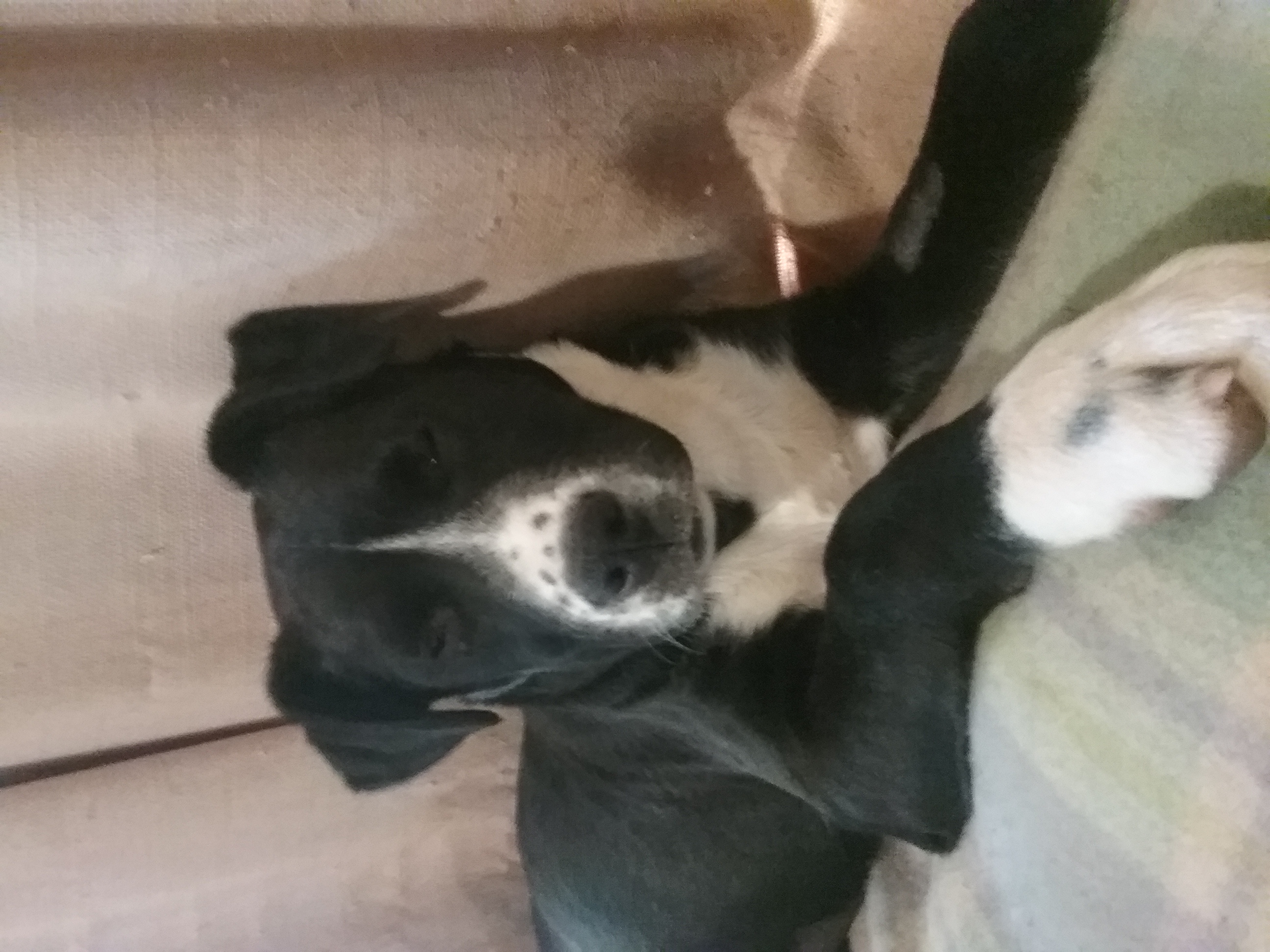 Currently living with lots of dogs and she loves them all great with the cats although she has had a few wacks from them as the cats dont need a sloppy puppy bath. 😁.