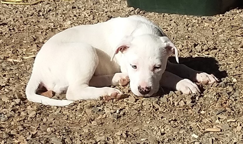My name is Neve my sisters and I are looking for our forever homes, we are called the Snow Pups because we are all white, we are 10 week old Border Collie x Wolfhounds.