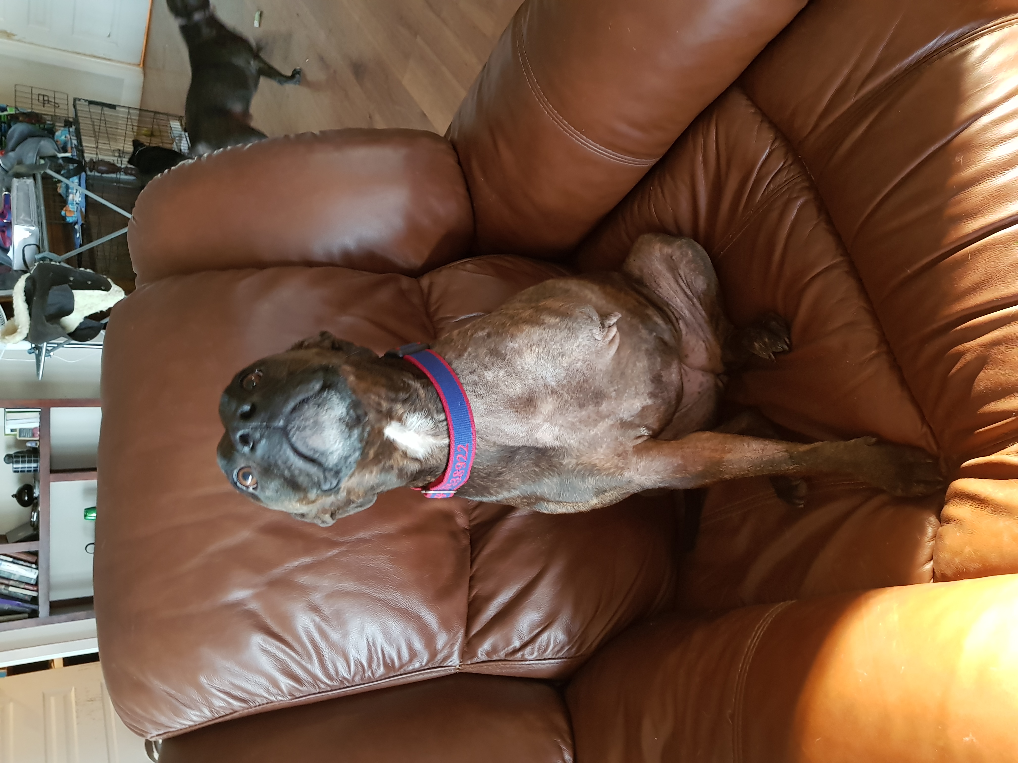 She is a really sweet girl and very much an inside, people dog. She doesn't suffer separation anxiety as you can go out and leave her inside no problem, but when you are home she loves to be around you.. She is good with other dogs , not sure about cats, good with kids, loves her cuddles. She is good in the car and her recall is great. She hasn't been on the lead much because of her leg but she on acres at the moment so there hasn't been the need to walk her on a lead.