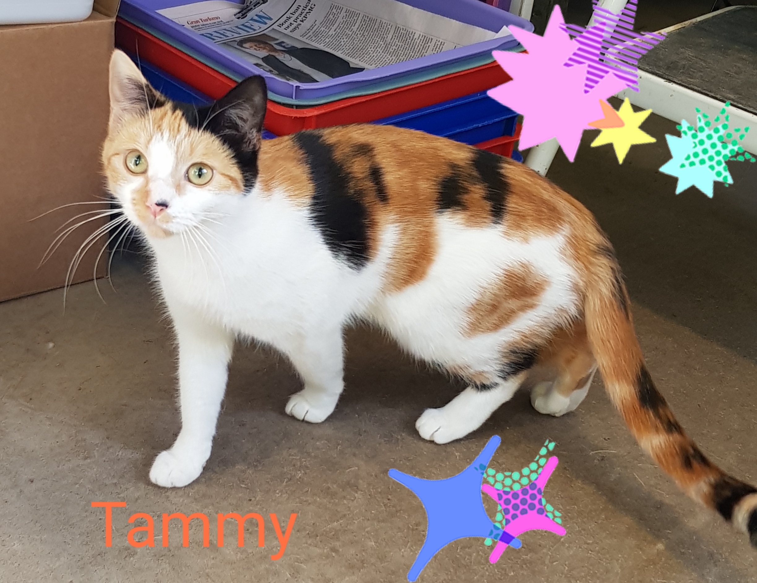 Tammy is a really sweet and gentle natured girl. She loves to see what you are up to and is quite partial to an ear rub!!! Tammy gets on well with other cats so could easily slot into a house with an existing cat.