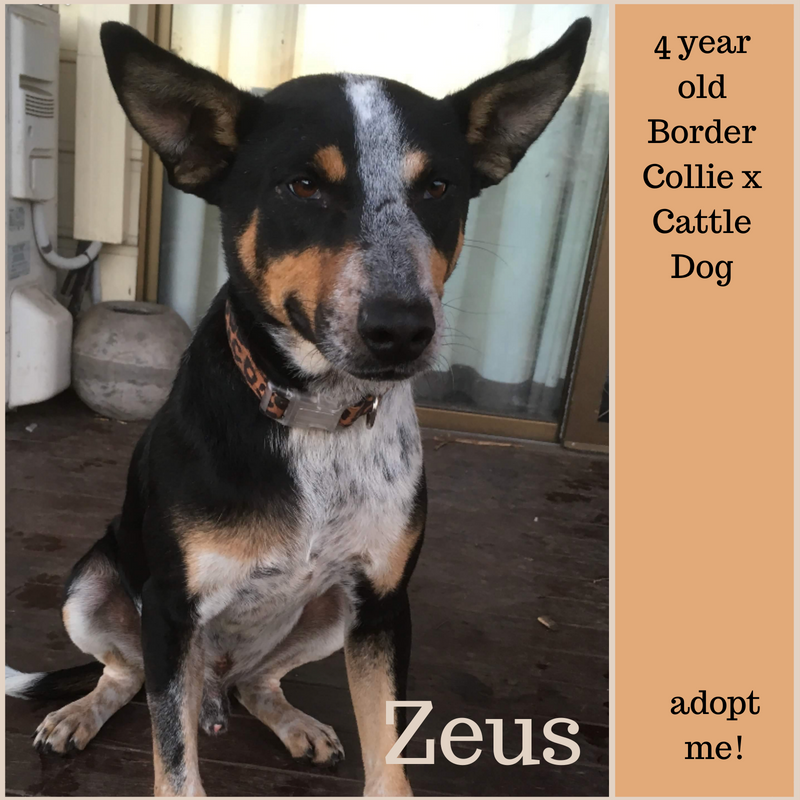 Have you ever looked into the eyes of a dog and seen an “old soul” Well that is Zeus. Zeus is a 4 year old Border Collie x Cattle Dog who is searching for his soul mate, a companion to spend his days with.
