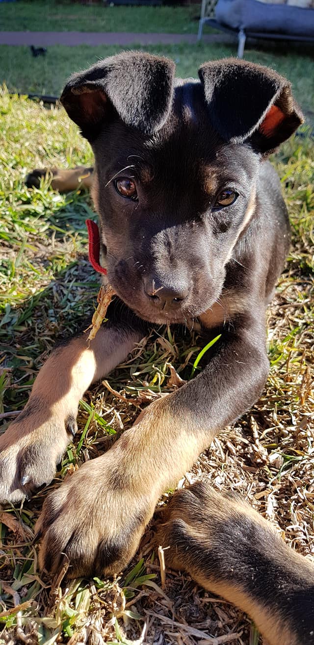 I may be the smallest of my litter but my big lovable personality makes up for my small stature. I Love a good rough and tumble and can hold my own with the Big kids. I absolutely love balls running, chasing and chewing them you name it I love it! I get along with all dogs big and small, I'm good with cats and kids. I'm a happy and healthy little miss with so much love to give I have the absolute best head tilt and puppy dog eyes and no how to work my magic to get me yummy treats and the word 'awwww cute" seems to be used a lot. I'm still very young and eager to please so training is coming along. If you have a special spot in your heart that needs to be filled I would be ever so happy to help in that department. All my Love Gwen xx
