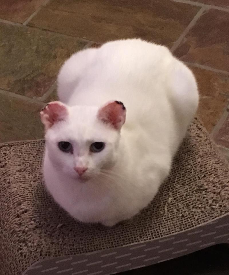 Sadie has previously lived outdoors which is not ideal for white cats due to their easily burned skin and her ears were badly damaged and required amputation.