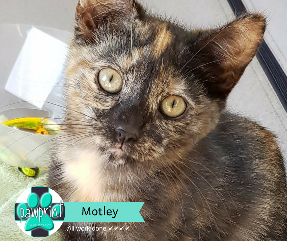 Motley started out as a scared little kitten but quickly learned to trust people and now loves a snuggle. She is playful and cheeky and loves to explore. She is so gentle and loving. Great with kids, dogs and chickens. She will make the perfect pet. Motley has also lived next to chickens and around 2 big dogs and 3 young children and is happy with all.