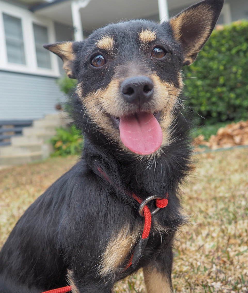 Gino is a quiet dog who I have barely heard bark. He is learning how to use the doggie door, and is copying my other dogs in going in and out to the toilet. Likewise he is learning what a leash is, and will trot along with the others when we go for a walk.