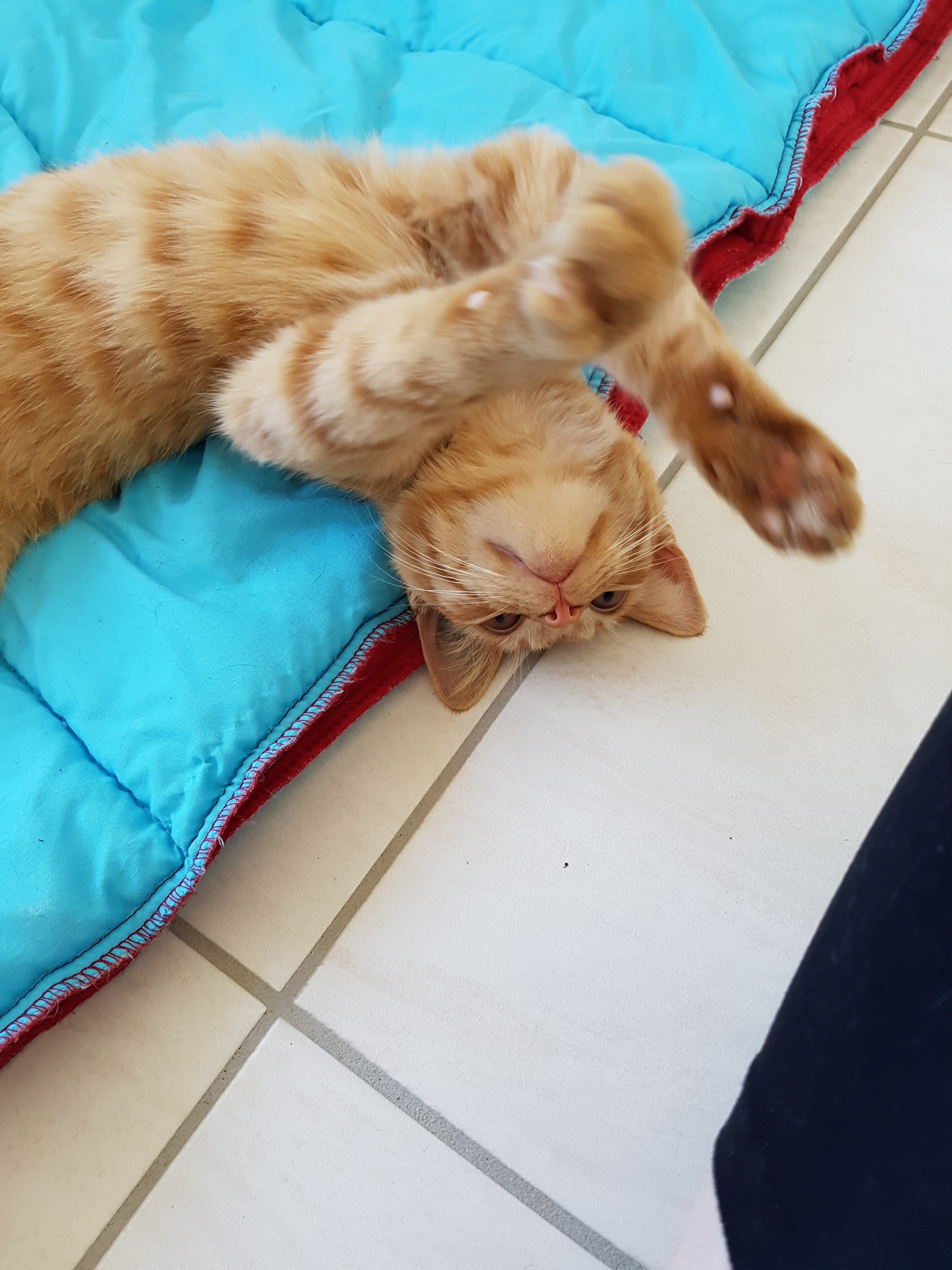 Harry is a feisty and very active kitty. He needs a home where he is provided with lots of attention and play time. Harry is a very affectionate and personal cat. His owner would need to be unique and a true cat lover. Harry loves to sit on your shoulder whilst you go about daily business. Or if you're bending over cleaning, he'll jump up on your back to try and help you. He is very expressive and loves to talk to you as well. Harry is a lovely boy, and very much a kitten in every way.
