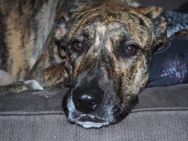 We were told Felicity is a Bull Arab and ourselves and the treating vet believe she could also be a mix of Greyhound. She is super fast, does love a good run and is then happy to flop in her favourite spot in the sun for a nap. She is such a smooch who will curl up on the sofa with you for cuddles. Felicity thinks she is a lap-dog and likes to be close to her special people to share lots of love and snuggles.