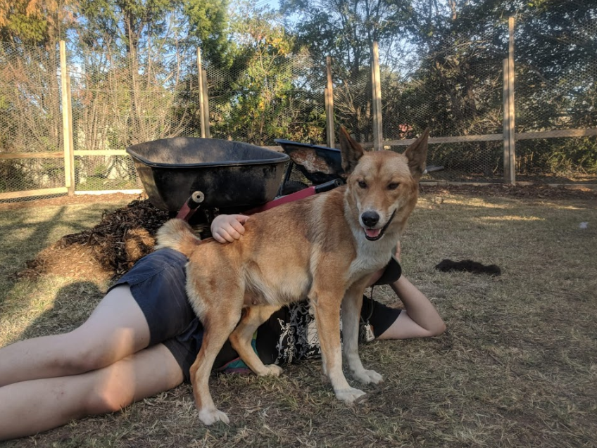 Bonnie is a smart and loving dingo. When she wants some attention, she loves to gently reach out her paw and tap you on the arm indicating that it’s time for a pat.