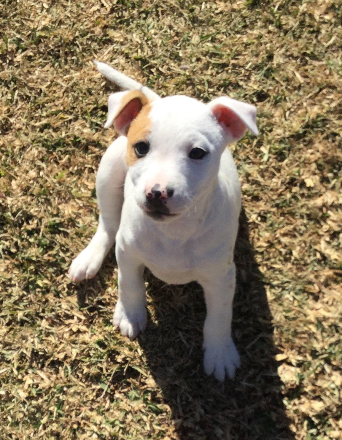 Squid (male, black nose) is the only one still available for adoption. They were born on 1st June. Mum is a small greyhound mix, dad is a purebred Jack Russell. We don’t expect Squid to grow very big.