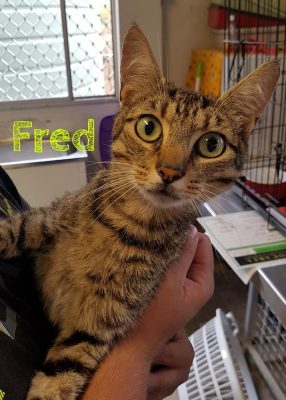 Unfortunately Fred found himself in the clink and he’s not saying much on what he’s life was like prior to this. We do know that he came in with a bad flea problem and now he’s skins cleared up he’s as healthy as a, well fat cat 🙂 He’s new family will need to make sure that he’s given good quality flea treatment (Comfortis works a treat) to make sure the little critters don’t bug him again.