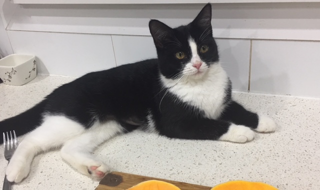 I purr a lot & my foster Mum tell’s me I am a real character especially when I run around the house chasing the dog. I get along well with the other cat’s & just disappear behind the lounge for a long nap when I need a break. I am all ready to go to my new home & can’t wait too meet you.