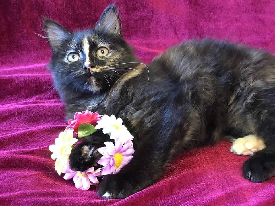 Millie is a cute little Tortie kitten who is a ball of energy, especially when playing with her sister Bella. Millie has the sweetest nature and loves nothing more than playing with her toys or chilling out in bed with her foster humans watching a bit of TV. Millie loves her food and will be the first to come running at meal time! If you are after two adorable kittens who love each other Millie’s sister Bella is also looking for a home.