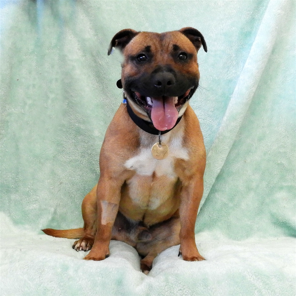 Always a happy fellow, Shadow's staffy smile is sure to win you over!