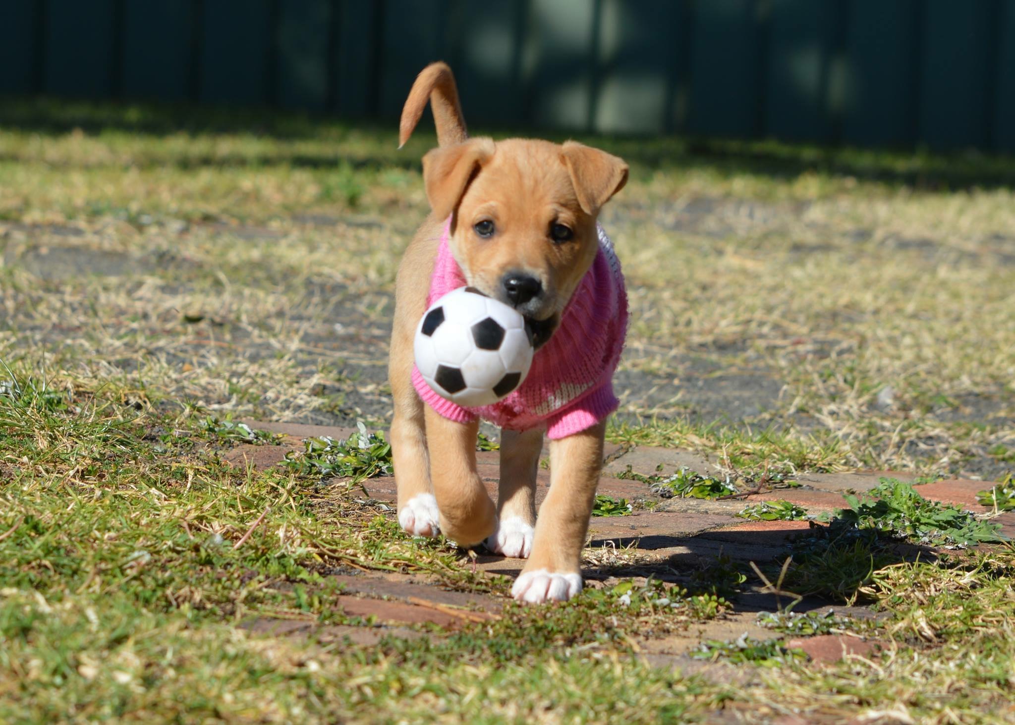 Wilma is a very energetic playful pup who loves to eat, sleep, play and chew on her soft toys and squeaky balls and… whatever she can find when you’re not looking. So, lots of chew toys and stimulation to keep her busy in her new home are a must.