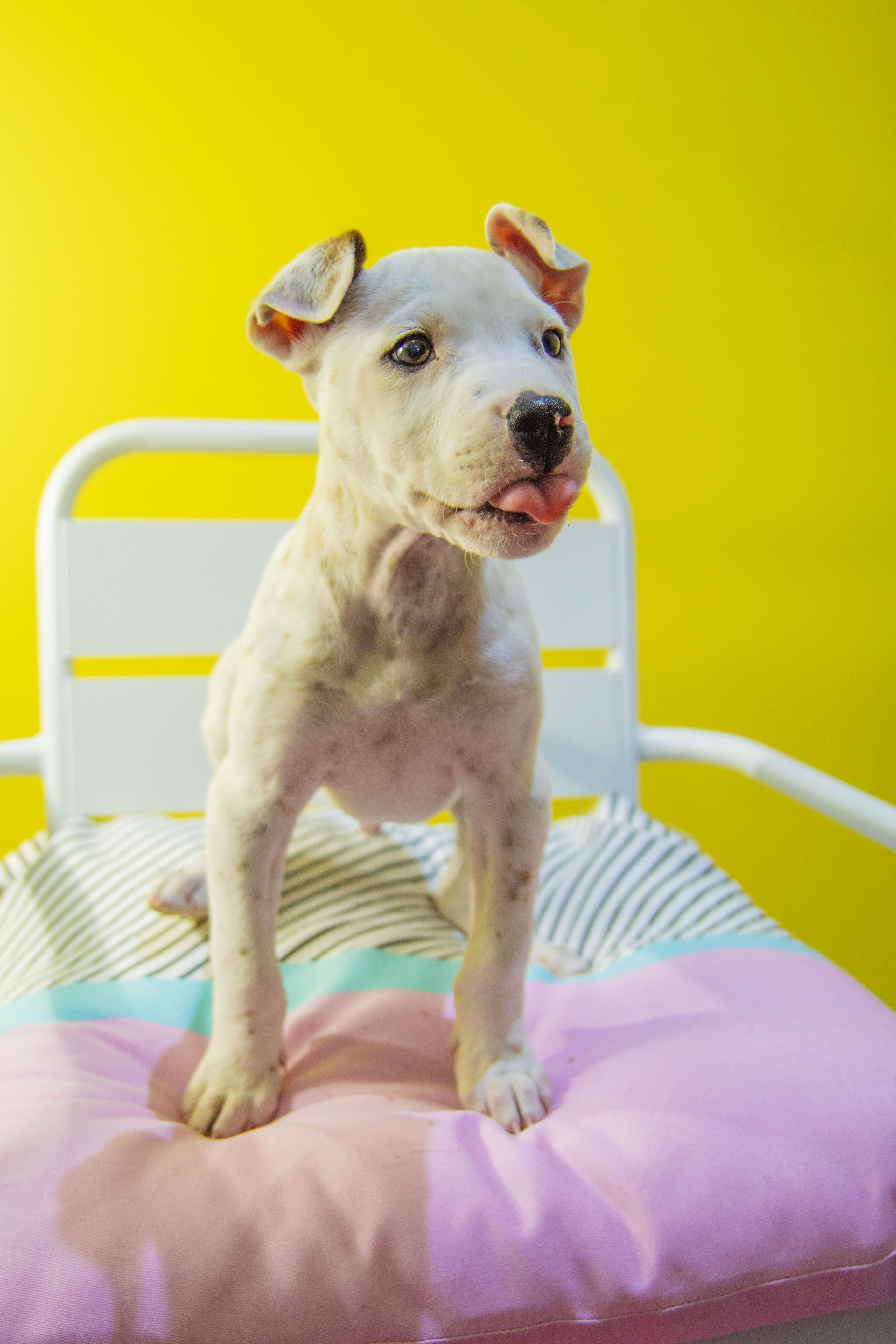 Toby is a 14 week old, Staffy x Cattle with a beautiful white coat! He's a confident boy who just loves to be around where the action is! He will be a loving addition to your home!