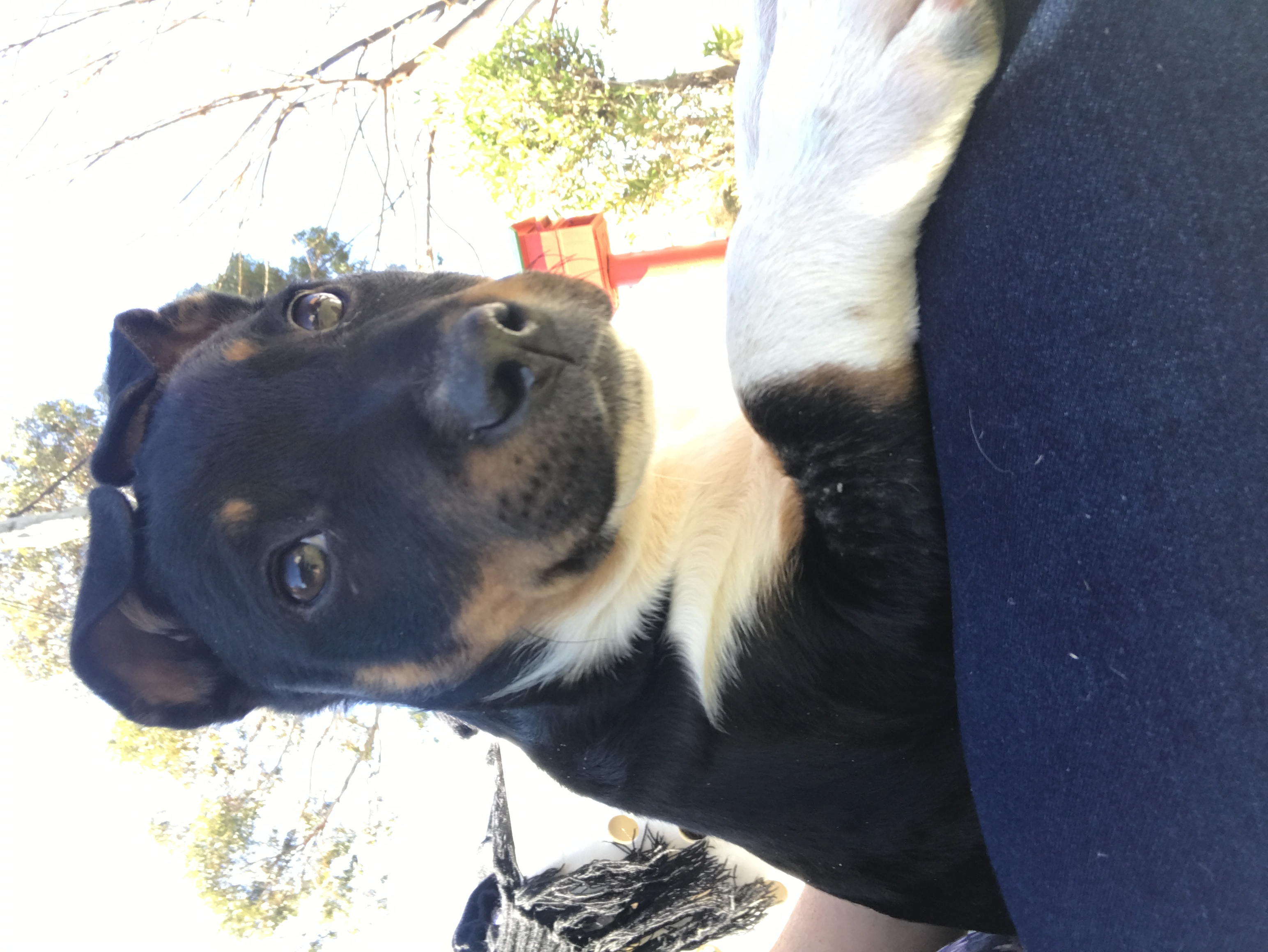 Edward is an adventurous young puppy he loves snuggles and cuddles he's good around other pets but occasionally will chase the cat however in our house the cat is the boss and he backs off once she's told him off!