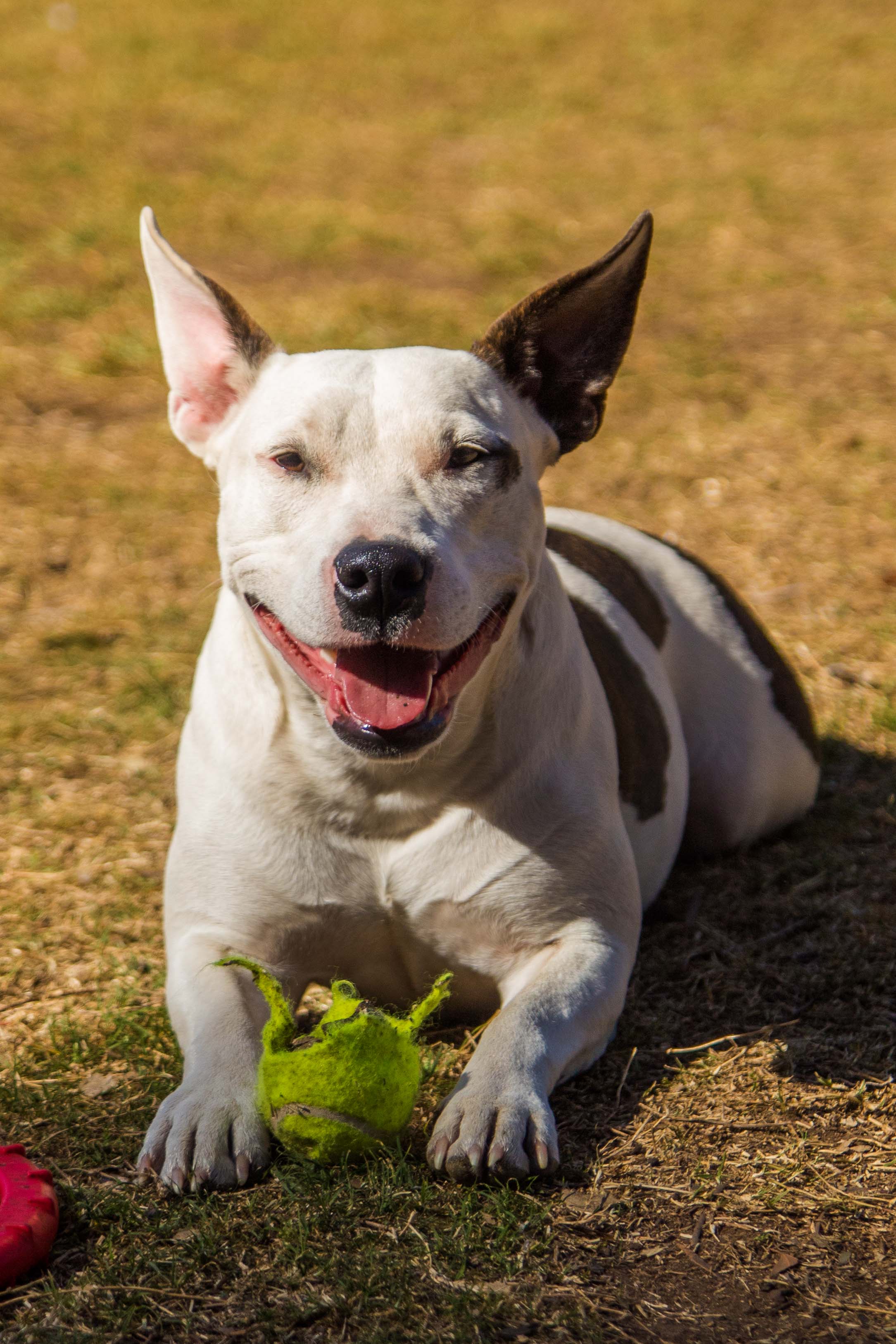 Bonnie is a fun loving, playing machine. She has been in foster care with dogs of all ages. She loves to lead a good game of chase, or tug-of-war and loves to coax other dogs into playing with her.