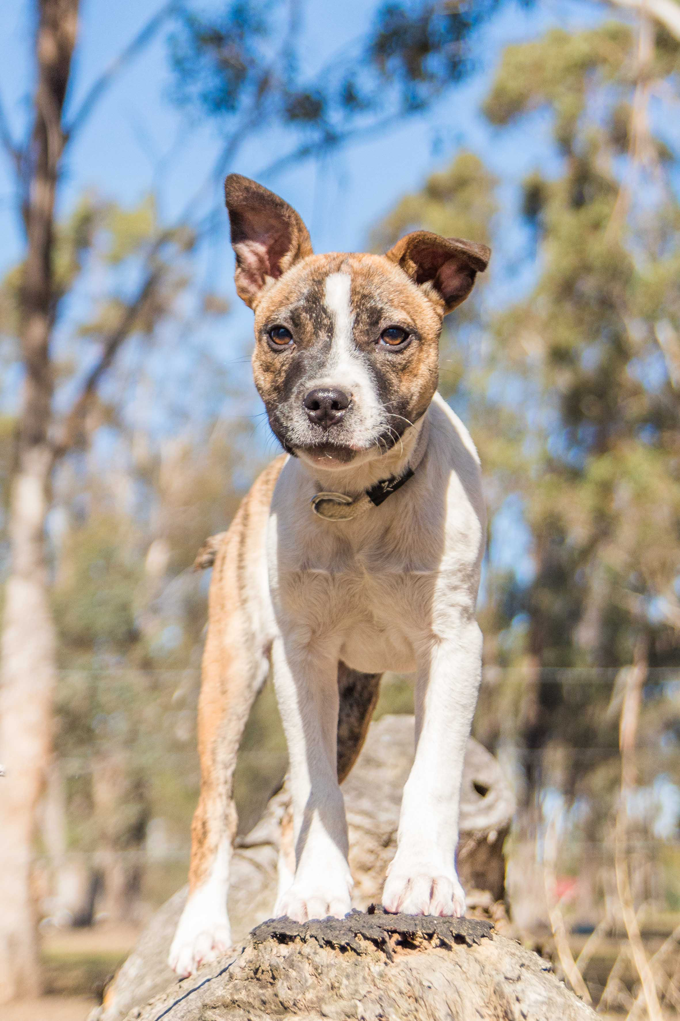 Mutz is a 12 week old, mixed breed pup. He has lovely brindle markings and cute perky ears. His distinguishing feature is a cute short tail that's just adorable when its wagging! When this boy stares into your eyes, you can't resist picking him up and giving him a cuddle!
