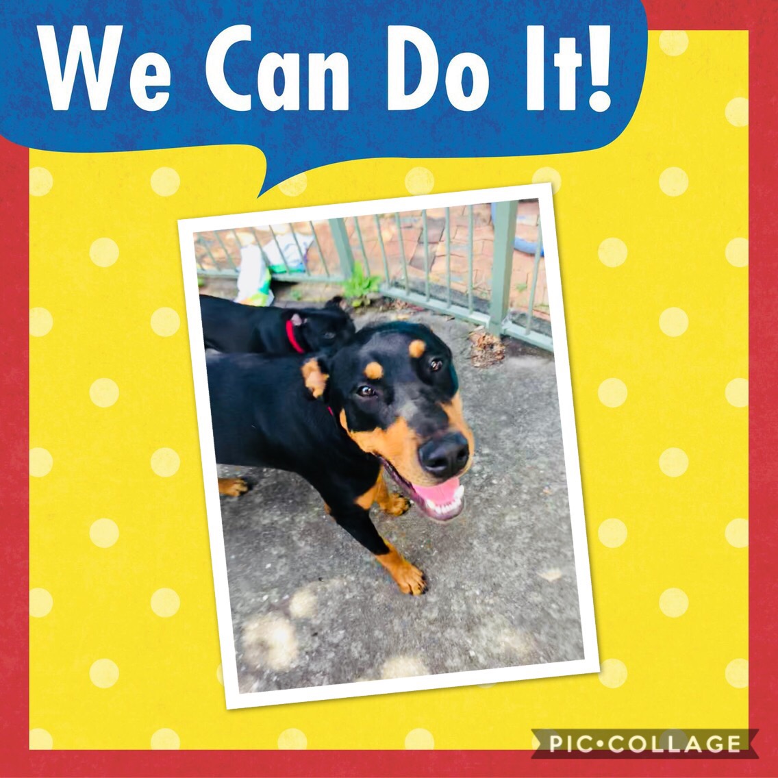 Doobie is a gorgeous Doberman Cross, super sweet and loving. He is great with kids, and all dogs including small ones. Just an alll round sweet boy. He is about 35 kg . Doobie is a big strong boy but desperate to please and so sweet and loving. We believe his first home had 9 kids and it was too much for the single parent, but to us, that just means he is well tested around kids.He sleeps inside and is house trained and great company (no one will break into your house with this gentle giant around). He just needs someone to show him the finer points of obedience, and then he will be perfect.