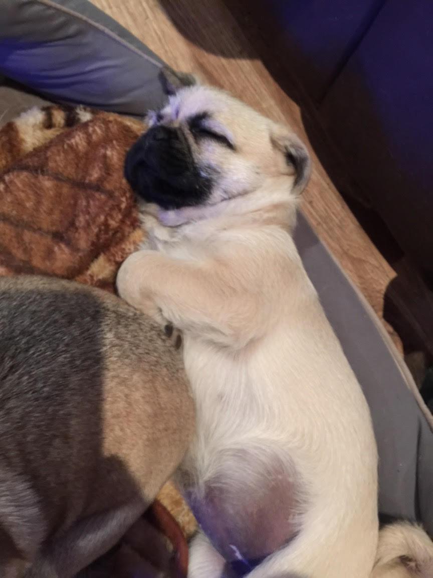 Dixie is just 10 weeks old and she’s a pug cross wiry hair Jack Russell which is basically just a long haired pug with lots of energy 😃