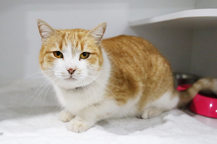 He is super friendly and wants to be around you and enjoys rubbing up against your legs. He enjoys being on the ground and getting affection and does NOT like to be picked up. He is best in a home without young kids.