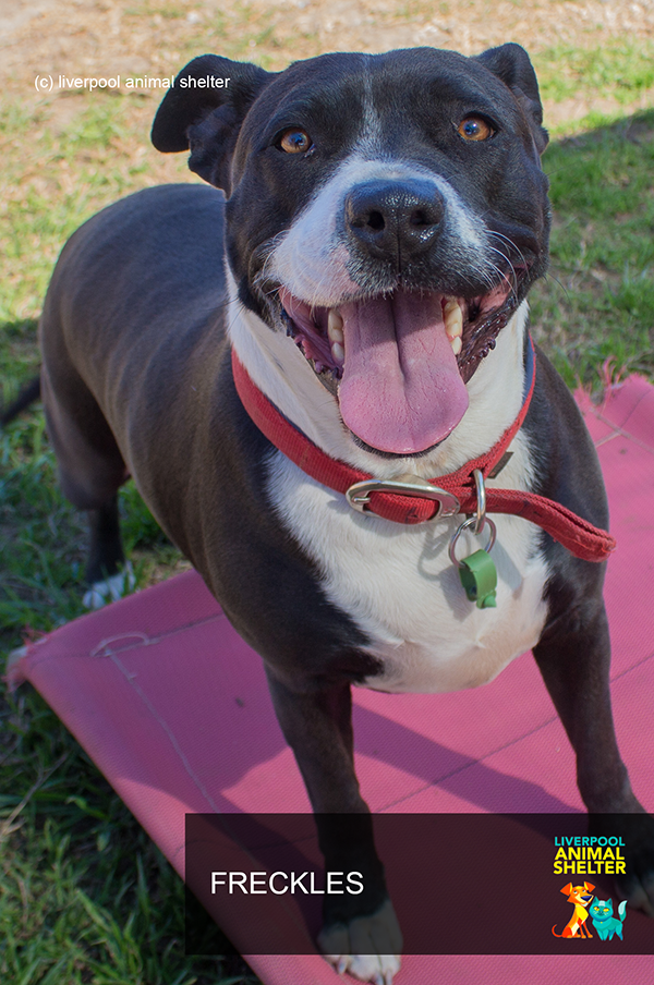 Freckles is a little on the tubby side so will need to have regular exercise and watch her diet in order to keep her fit and healthy.