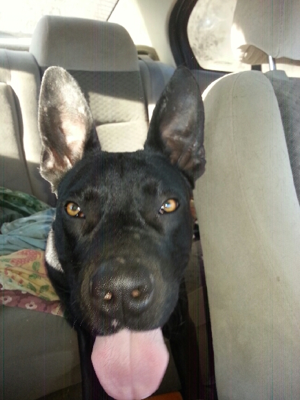 Sweet Dale came into care very skinny, anxious and scared of males. His carer has been working with him and he's come along in leaps and bounds. A very sweet boy with the most magnificent tall ears and beautiful black coat. He needs some lead training as he is a strong boy who still pulls. He's got lovely long legs but not an overly solid boy. His breed mix is anyone's guess. He appears to only be a young fella.