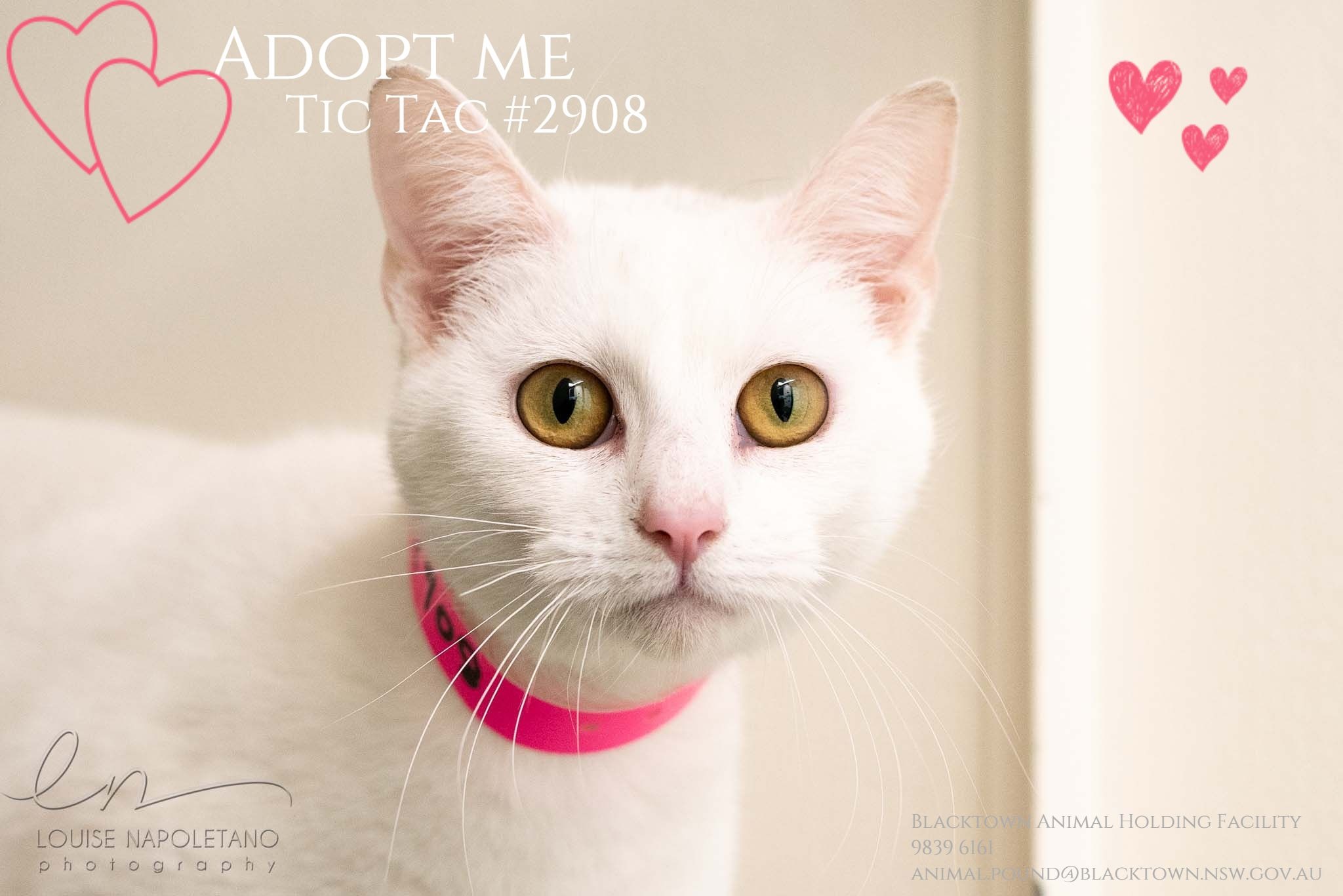 Tic Tac's adoption price is $200 and this includes desexing, microchipping, lifetime registration, vaccination, and health check.
