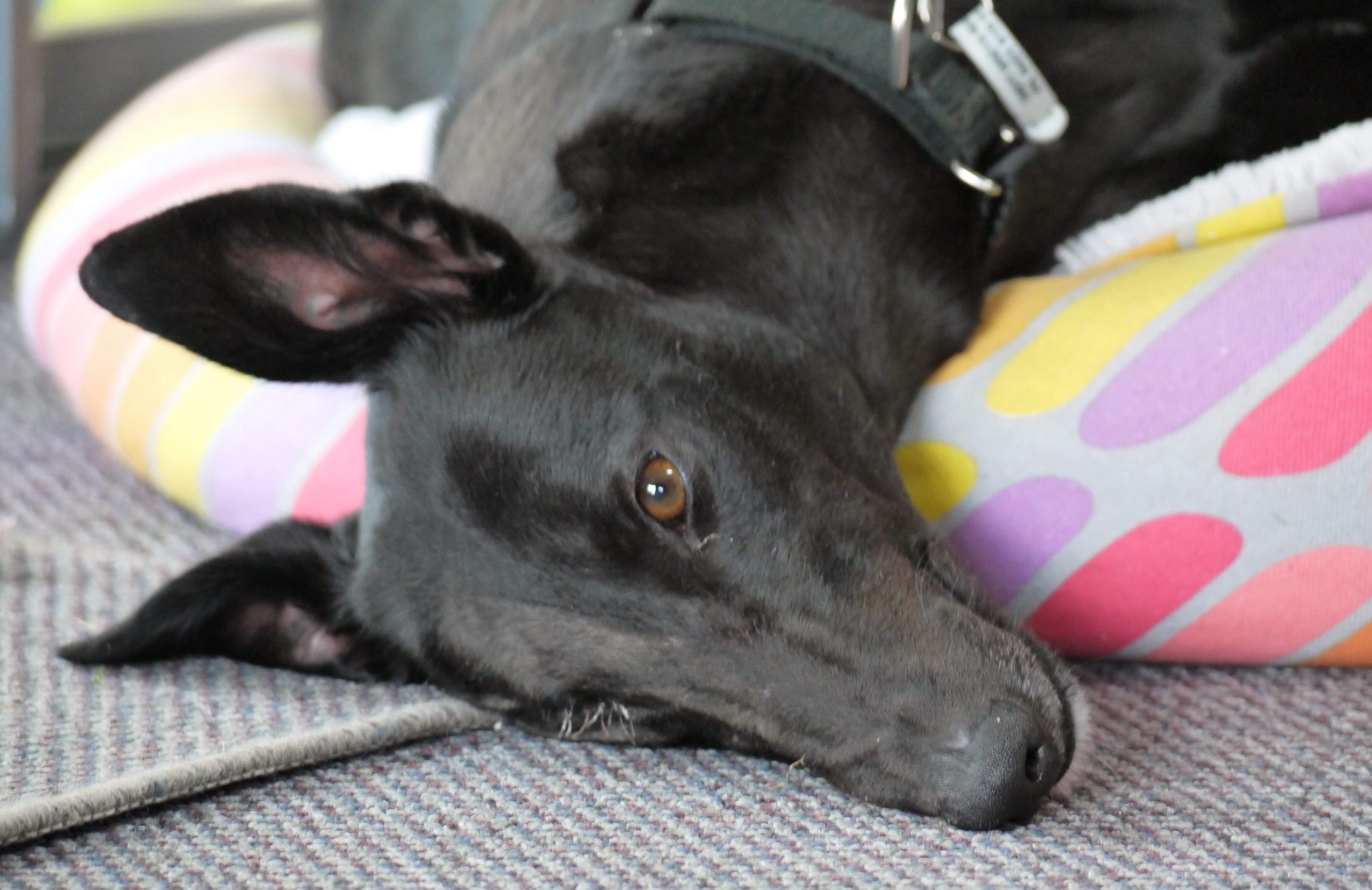Sooty is house trained, de-sexed, wormed, heartworm tested and vaccinated. She walks well on a lead. Sooty has not raced.
