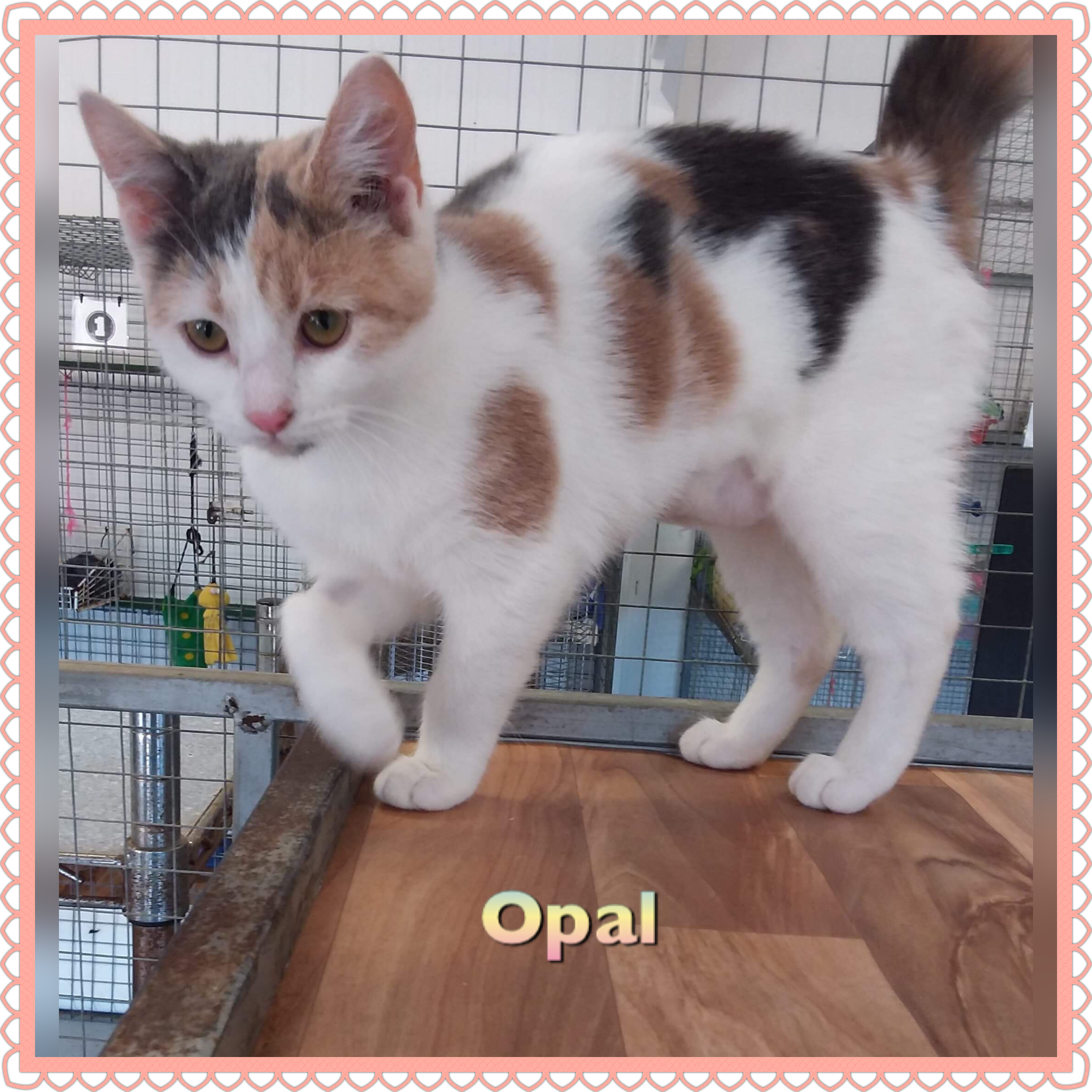 Little Miss Opal is just adorable. She loves to play with all her kitten friends. Opal came in with her brother Oscar.
