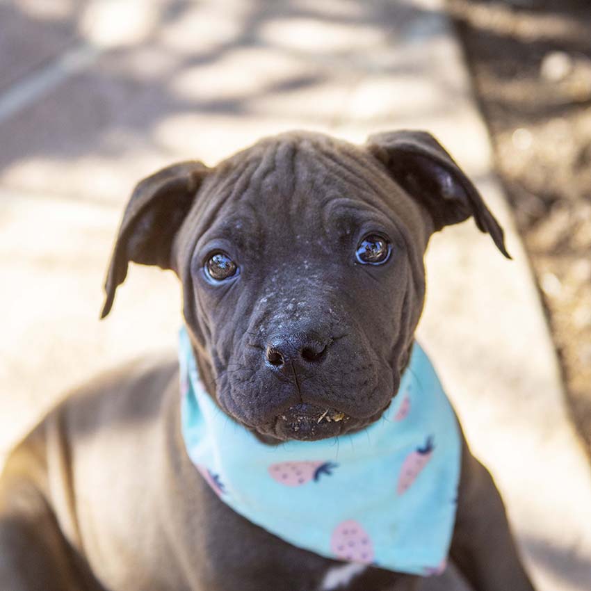 Charlotte is an 8 week old, female, Mastiff x Boxer puppy. She is a very playful pup who loves to chase and tumble with her sister. She’s pretty easygoing and happy and she does enjoy her food.