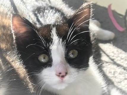 Hello my name is Millie. I am a short haired domestic breed kitten. I am black and white with the cutest little black mask like a bandit. I have been with my foster family for a few weeks now and finding my confidence nicely. I am just starting to explore my indoor environment and have met the cats of the family and the big happy dog. By the time I find my furrever home I will be ready for anything. I like playing with my sister Maisie and we would be a great double act if you are thinking of two kittens.