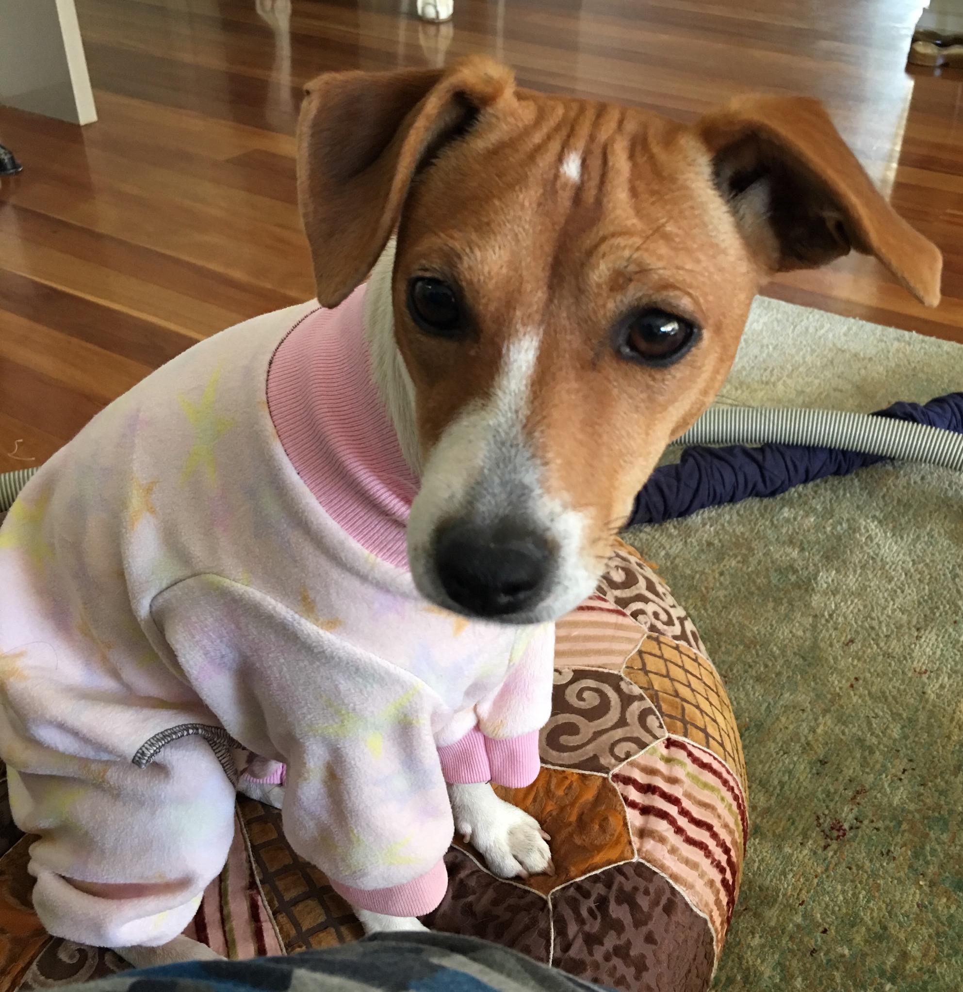This dear little girl, foxy cross with perhaps some Italian Greyhound, is 8 months old.