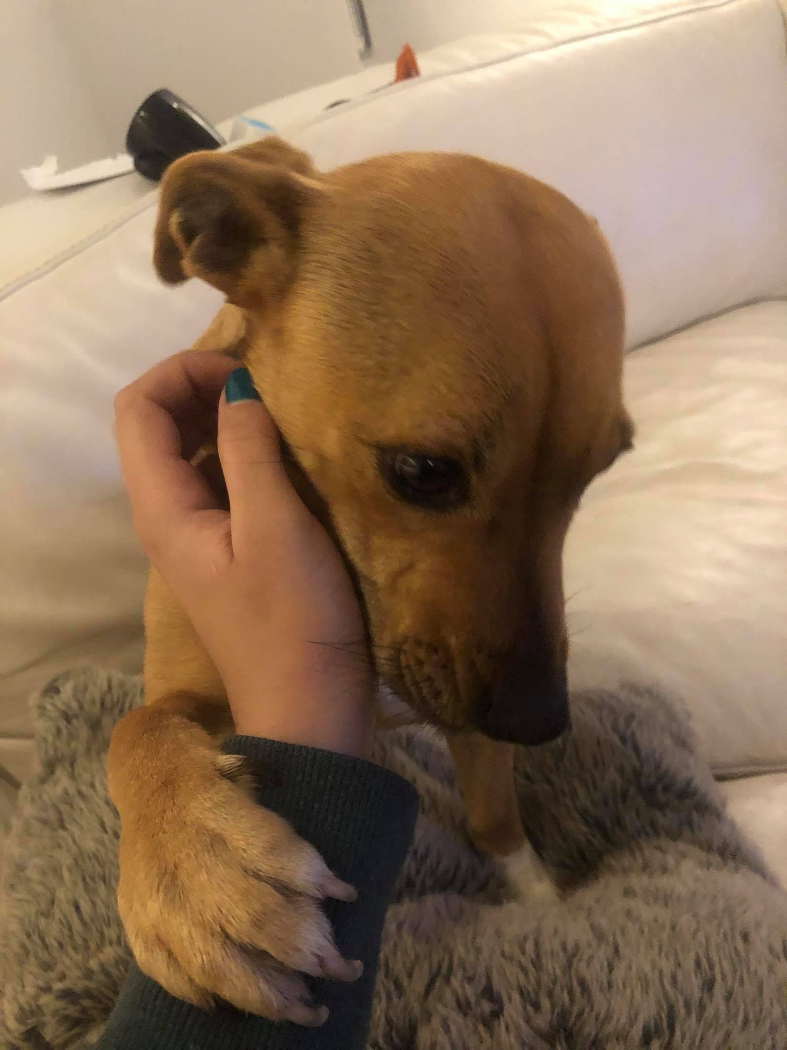 Lemon is a beautiful girl, very friendly and very playful. She adores humans and other dogs. She lives for cuddles and will curl up next to you at night just to be next to you.